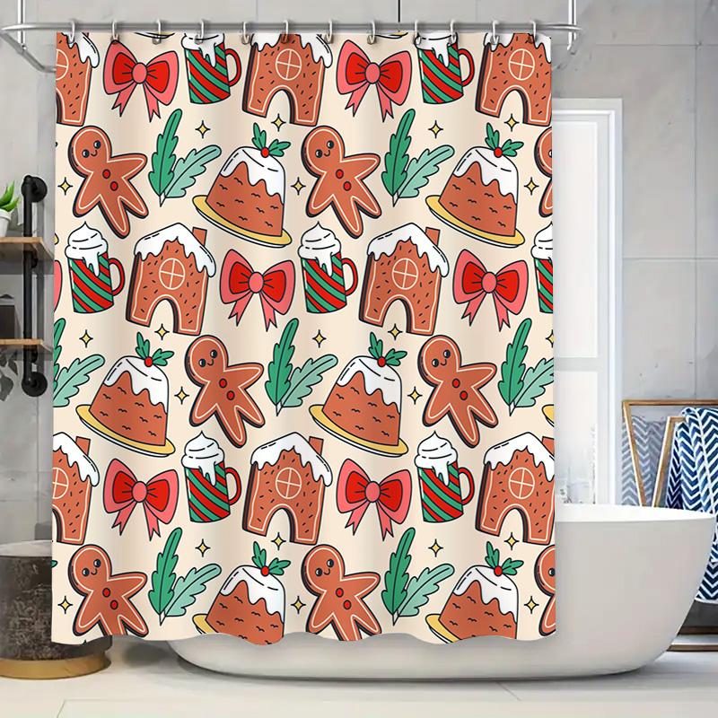 Christmas Shower Curtain Decor Bathroom Accessories Christmas Party Supplies Home Decorations Festive Red Green White Pattern