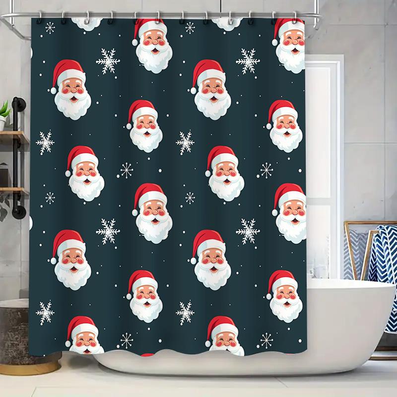Christmas Santa Claus Pattern Shower Curtain Waterproof Fabric Decorative Home Bathroom Decoration Black 3D Printed Size:180cm*1