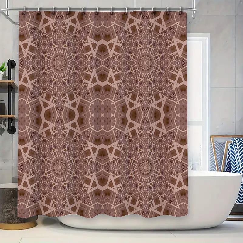 Rustic Bohemian Bathroom DecorPink Geometric Shower Curtain for Spa Retreats Bathrooms Privacy Protection Waterproof Fabric Prin