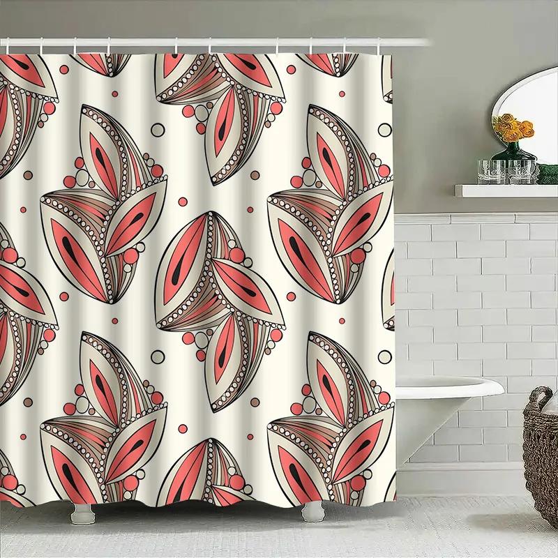 Abstract Geometric Patterns Bath Shower Curtain 3D Printed Polyester Fabric with Hooks for Bathroom Decorations In Coral White