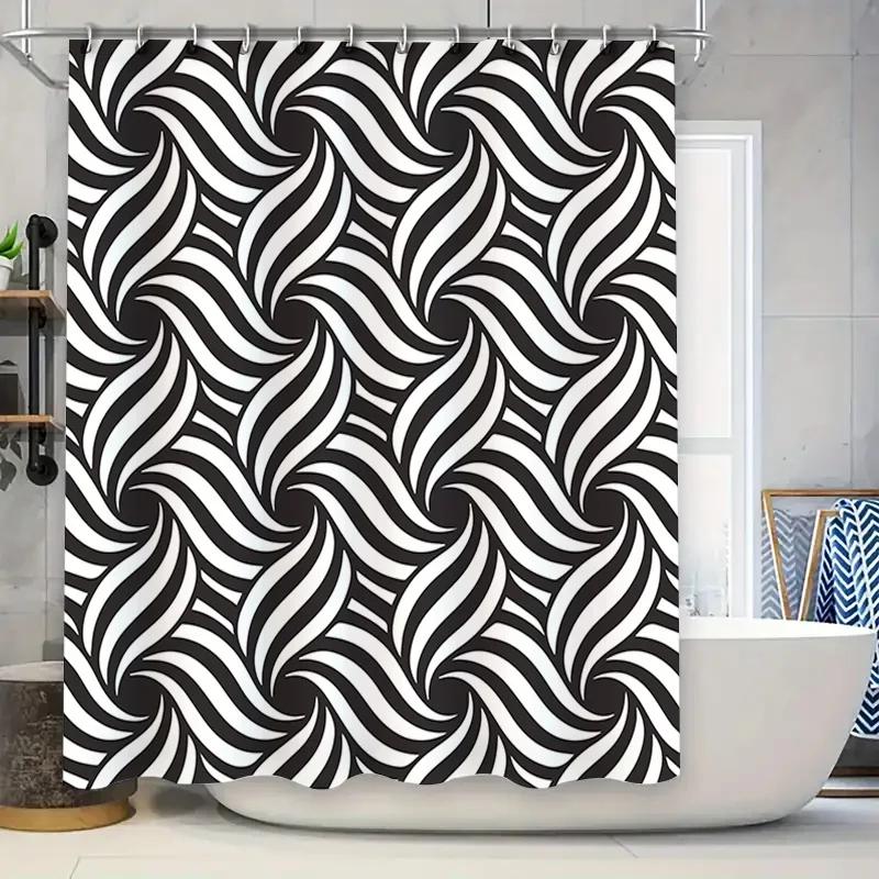 Black and White Swirl Shower Curtain for Bathroom Decor Stylish Modern Pattern Printed Polyester Fabric with Hooks