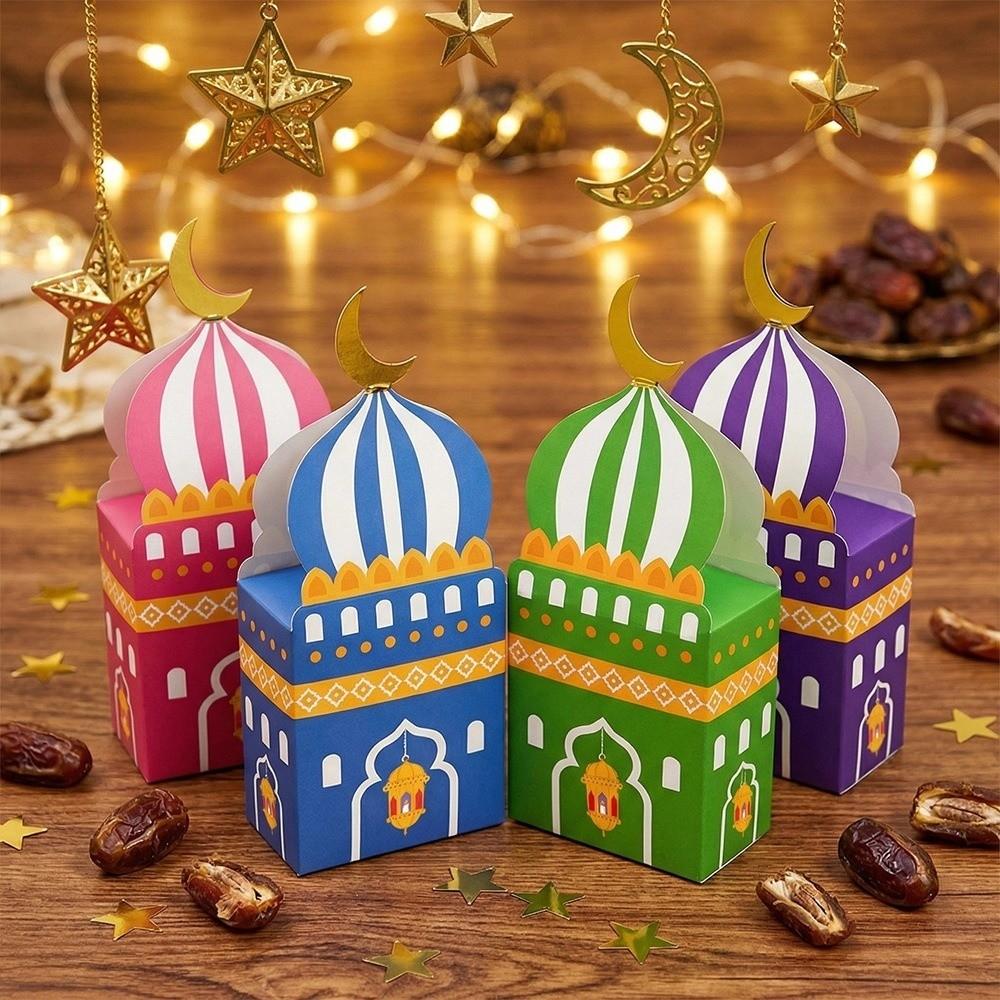 12Pcs Favor Bags Eid Mubarak Gift Box Moon Castle Pattern Candy Packaging Box Muslim Festival