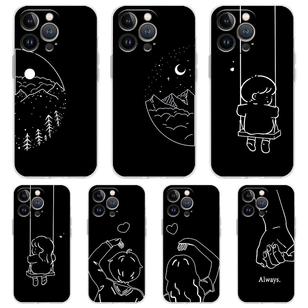 Couple Cartoon Aesth Sun Moon Luxury Phone Case For iPhone 16 15 14 13 12 11 Pro Max XS X XR SE 7 8 Plus Silicone Clear Cover