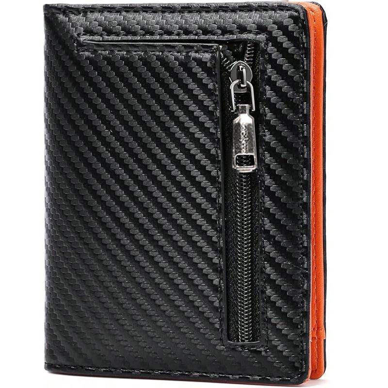 Men Carbon Fiber Wallet RFID Blocking Short Bifold Wallet Zipper Coin Pocket Card Holder Slim ID Window