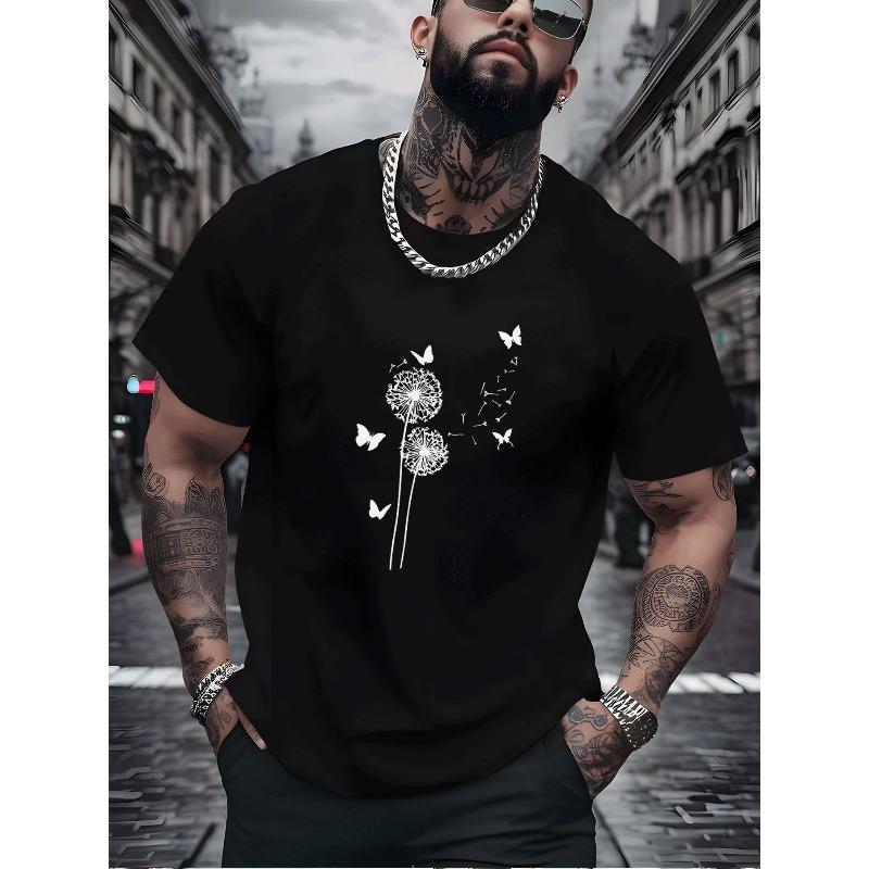 Men'S T Shirt Casual Street Style Dandelion Butterfly Pattern Tee Adult Fashion Daily Wear for Men