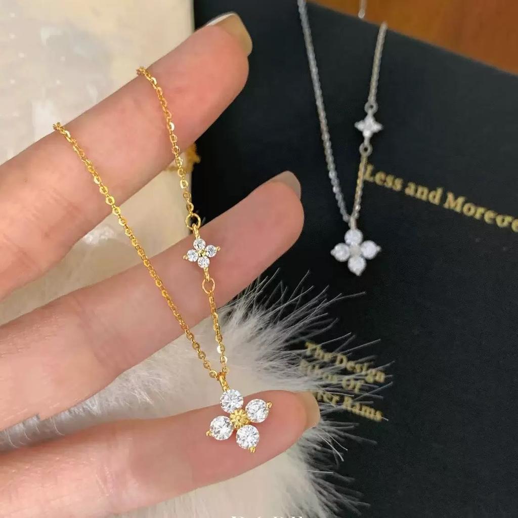 New Super Flash Large Four Leaf Clover Necklace, Ladies' High End Style, Flower Light Luxury Clavicle Chain