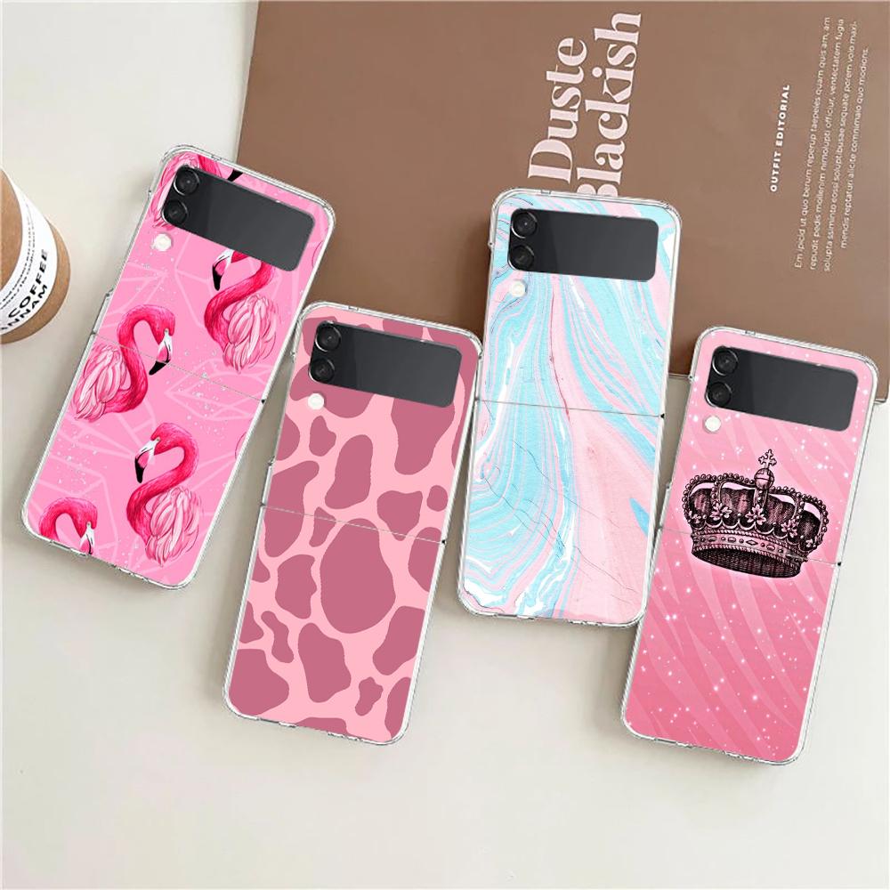 Rose Gold Pink Marble Queen For Samsung Galaxy Z Flip 3 4 5 Hard Folding Clear PC Phone Case For Samsung Z Flip3 Cover Bumper