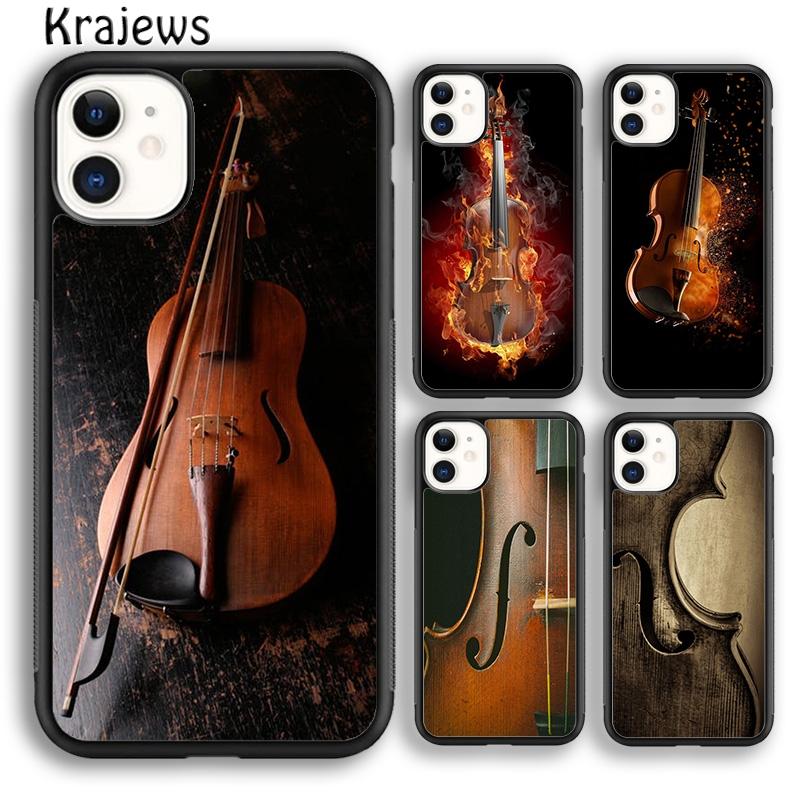 Krajews Elegant Wood Cello Violin Soft Phone Case Cover For iPhone 17 Air 16 15 14 Plus 11 12 13 Pro Max Coque Fundas