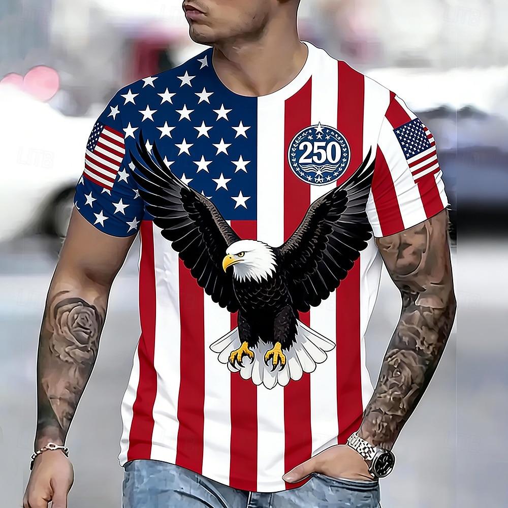 America's 250th Anniversary Men's American US Flag Eagle T Shirt Short Sleeve T Shirt 3D Print Crew Neck Shirt Daily Military Daily Street