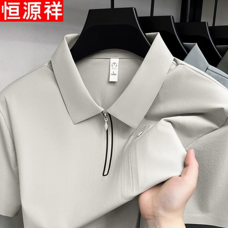 Hengyuanxiang Men's Ice Silk Zipper Polo T-Shirt