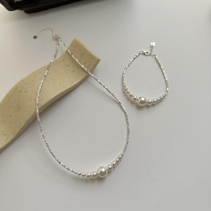 S925 Sterling Silver Smile Gradual Change Broken Silver Necklace French Retro Elegant Simple Strong Light Pearl Bracelet Jewelry