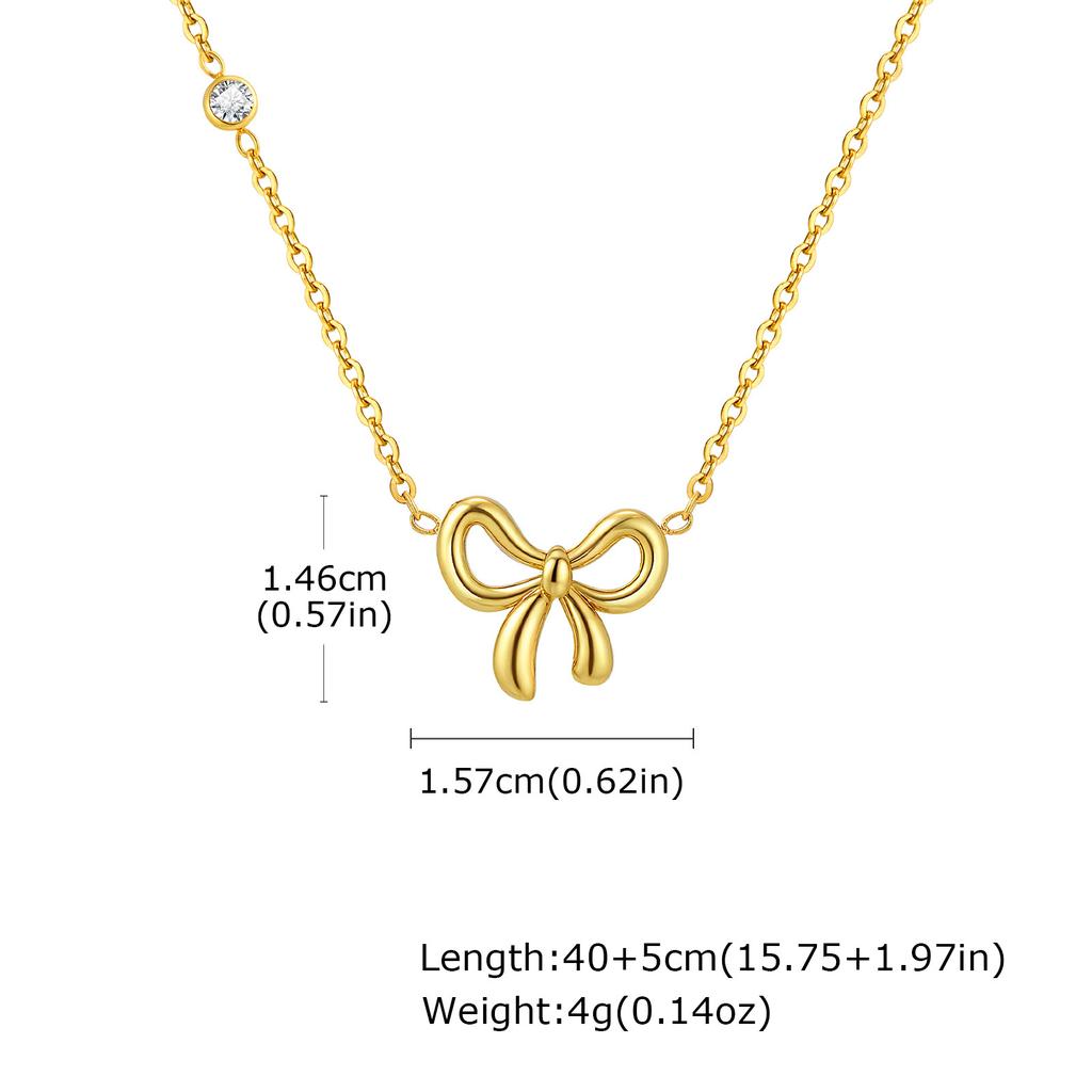 Fashion Stainless Steel Zircon Bow Gold Necklace Ladies