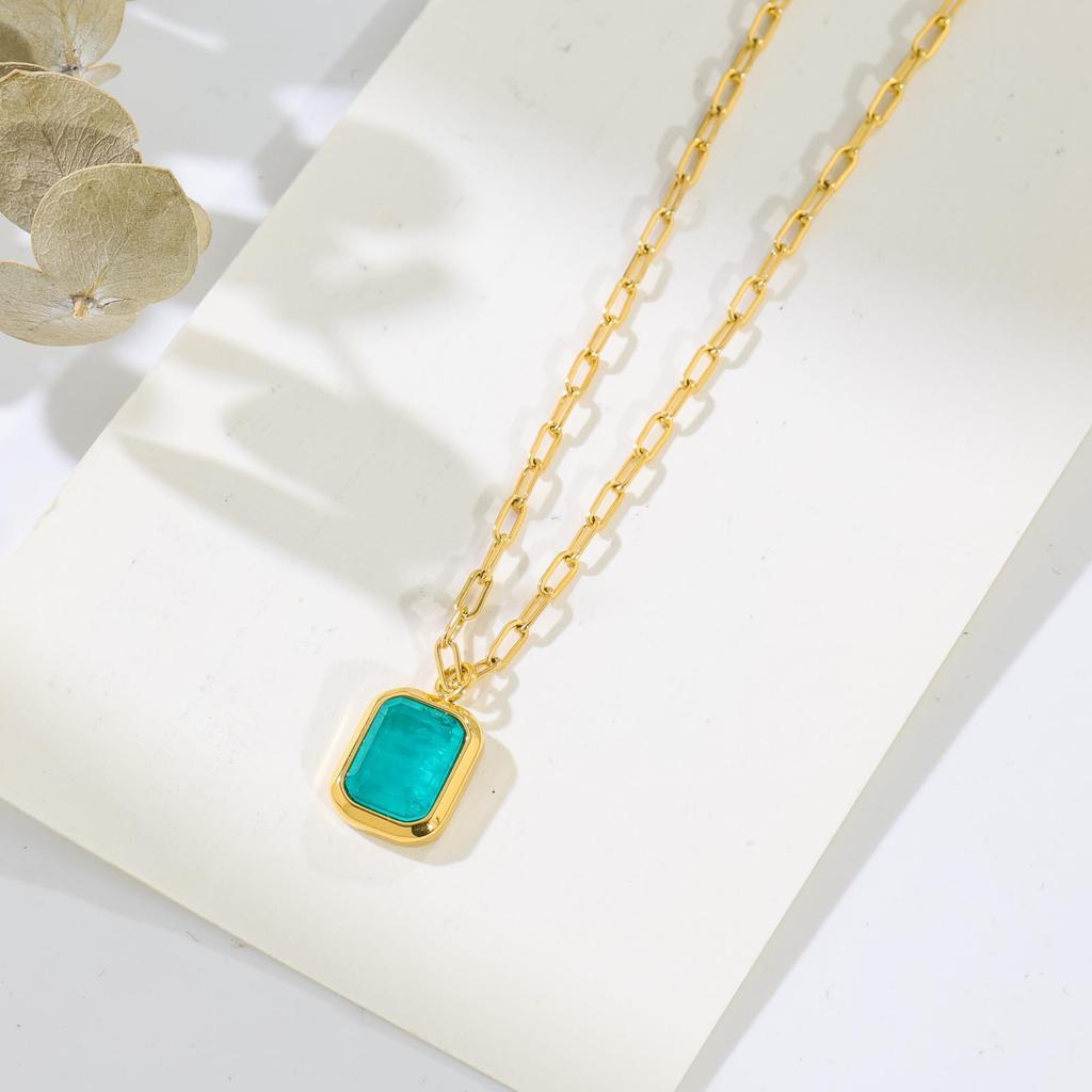 Vintage Emerald Pendant Necklace 18K Gold Titanium Steel Necklace Temperament Autumn And Winter Necklace Color Retention