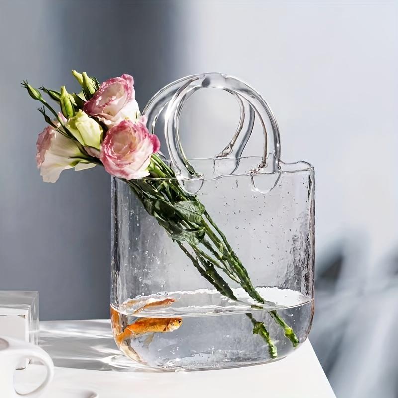 Elegant Geometric Handbag Vase Chic Oblong Glass Decor for Hydroponic & Traditional Arrangements