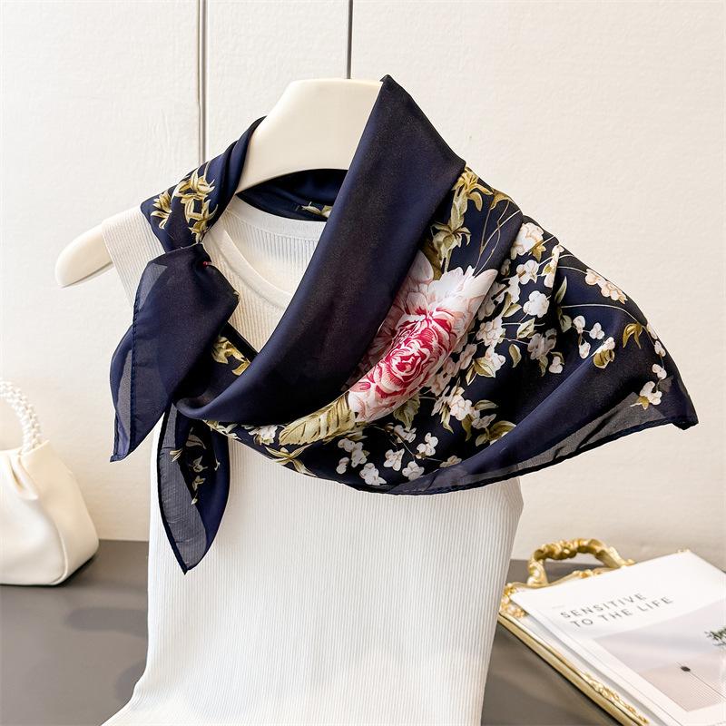Elegant Ladies Square Scarf for Women Floral Print Versatile Seasonal Decorative Necktie Fashionable Headband Bandana