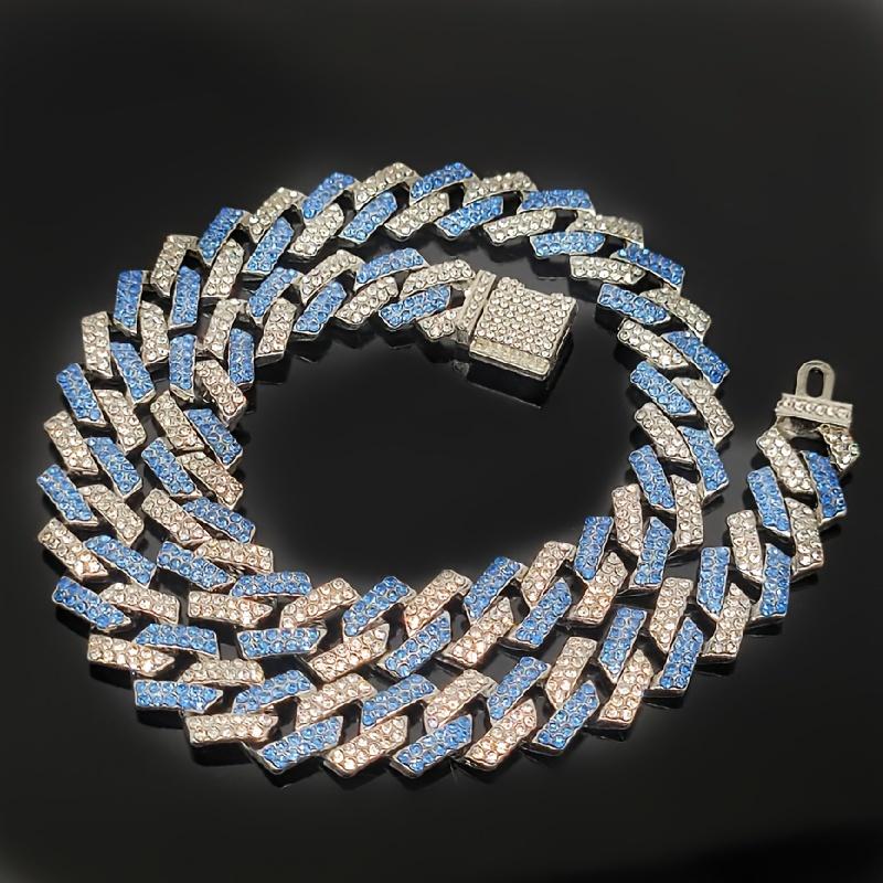 Popular Small Flip Top Hiphop Pink Blue Hip Hop Cuban Chain Quadrilateral Bar Prismatic Men's Necklace