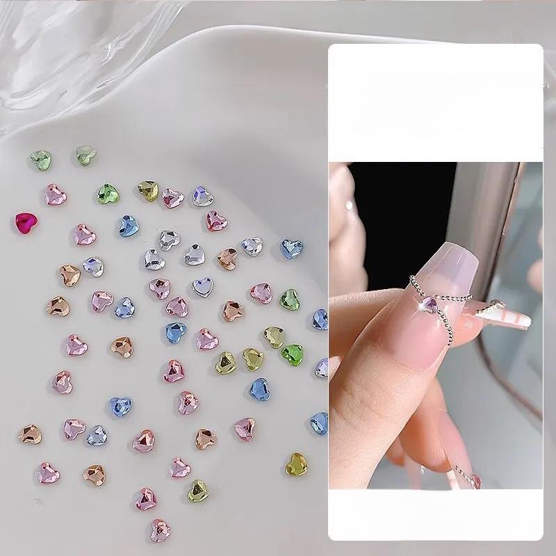 50PCS Mini Love Heart Diamond Nail Decoration Super Sparkling Flat Bottom Diamond Colorful Small Peach Heart Explosion Spark