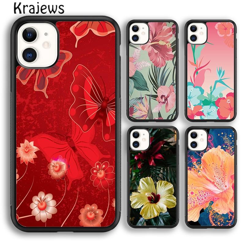 Krajews Butterflies Hibiscus Flowers Soft Phone Case Cover For iPhone 17 Air 16 15 14 Plus 11 12 13 Pro Max Coque Fundas