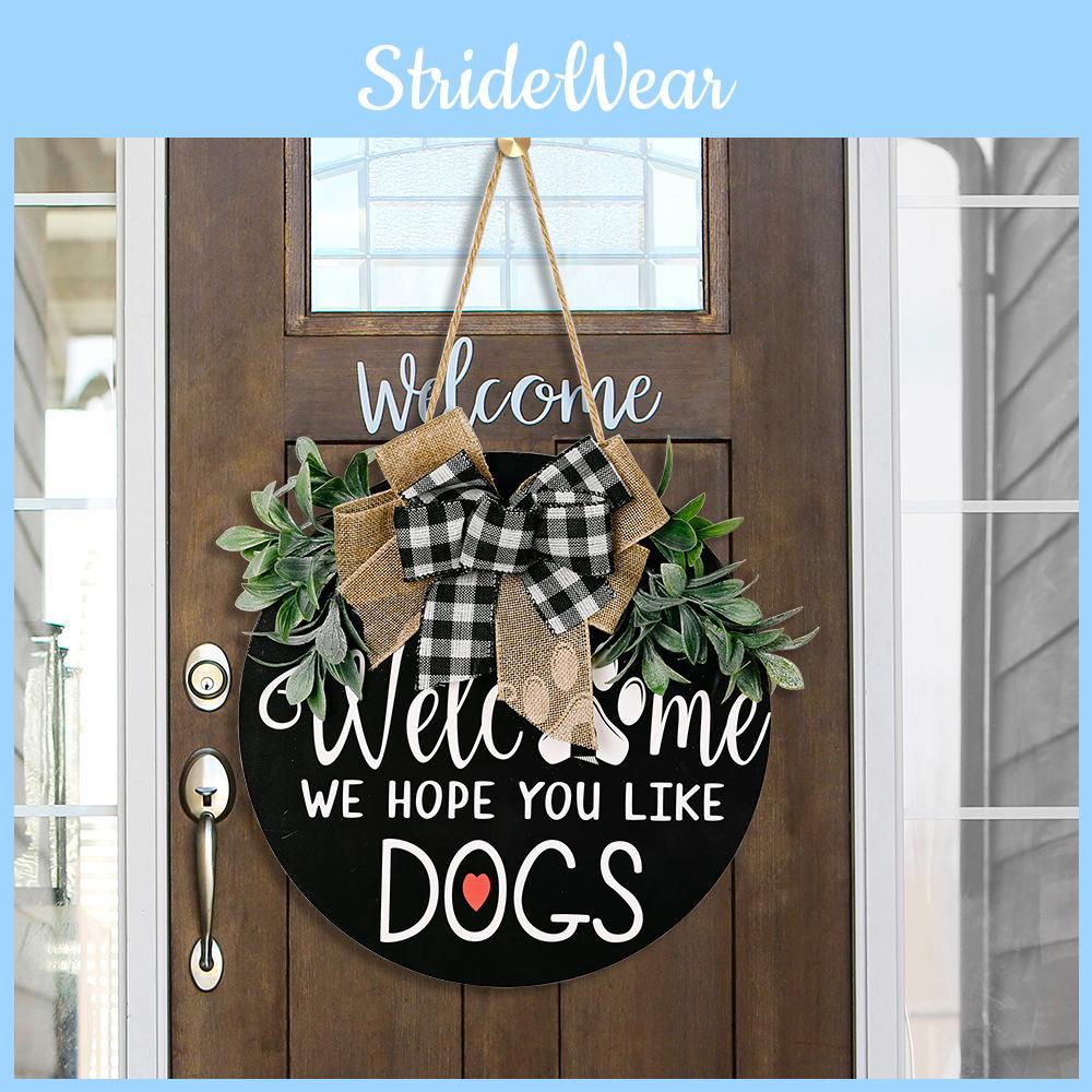 Rustic Chic Wooden Dog Door Decor With Stylish Bow And Leafy Wreath For Festive Home Accents