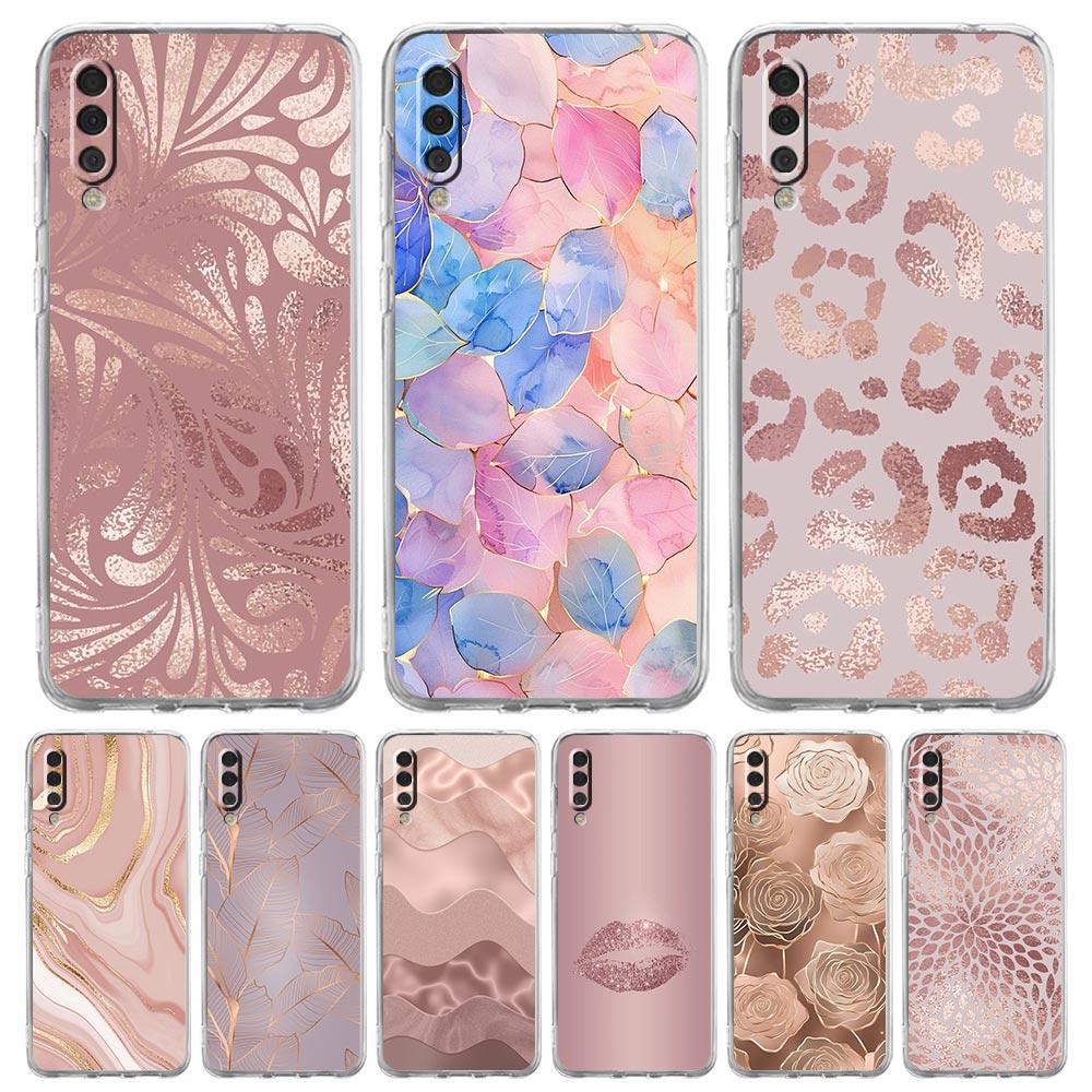 Phone Case For Samsung A16 A14 A12 A22 A32 5G A34 A42 A52 A54 A50 A70 A40 A20E A10S A20S A04S A06 Cover Beautiful Rose Gold Art