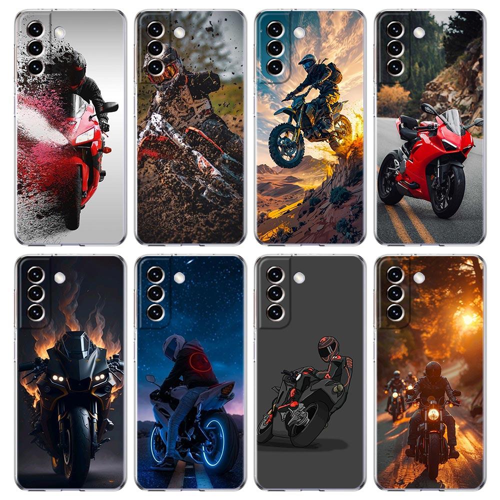 Phone Case For Samsung Galaxy S25 S24 S23 FE S22 Ultra S20 S21 5G S10 S9 Plus S10E S8 Soft Cover Moto Cross Motorcycle Sports
