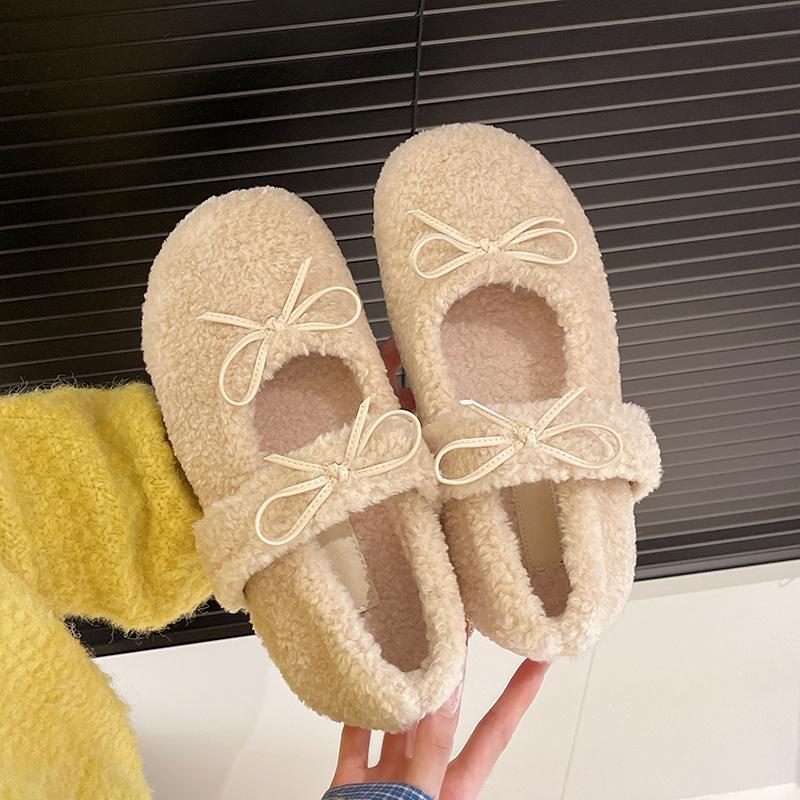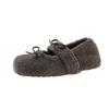 Women Fur Flats Shoes Bow Suede Casual New Loafers Fashion 2026 Fashion Trend Winter Short Plush Walking Shoes Woman Shoes