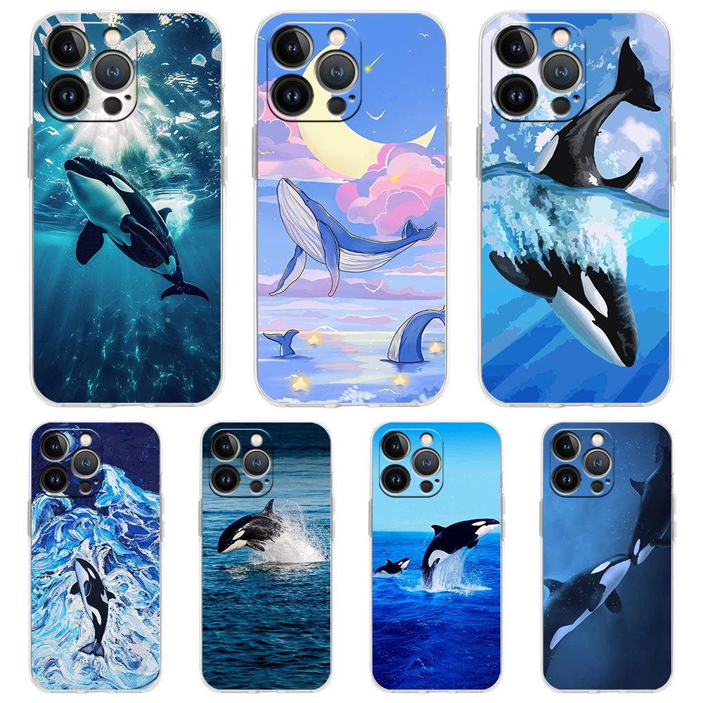 For iPhone 15 16 14 13 12 Mini 11 Pro Max XS X XR SE 7 8 Plus Silicone Clear Cover Orca Ocean Lovely Killer Whale Phone Case