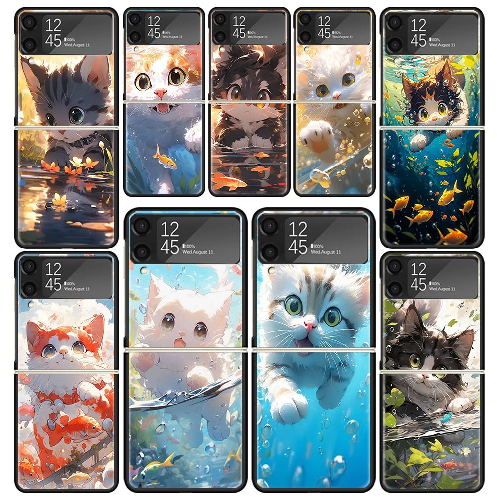 Cartoon Cute Cat Fish Aesthetic Cases For Samsung Galaxy Z Flip 4 5 6 7 3 Z Flip7 Flip6 Flip4 Flip5 Flip3 5G Hard Shockproof Fun