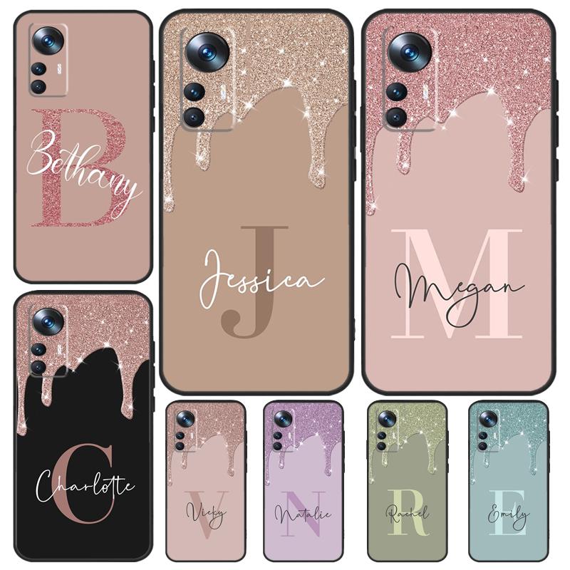 Personalised Name Slim Liquid Glitter Case For Xiaomi 14 13 11T 12T 13T Pro 12 Lite 12X POCO X3 X5 Pro X4 F4 M5 M5s F3 F5 Cover