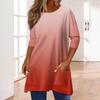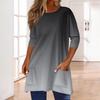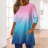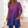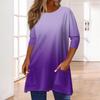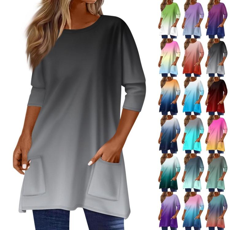3/4 Sleeve Pocket Tops For Women T-Shirt Casual Print Mid-length Tops T Shirt Round Neck Pullover Blouse