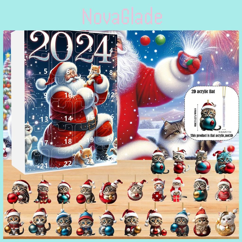 Christmas Countdown Blind Box With Acrylic Cat Car Pendant For Holiday Gift Giving