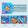 This three-in-one folding puzzle book features durable paper construction. It offers engaging visual content designed to support early cognitive development and fine motor skills. The set includes three themed puzzles: transportation, dinosaurs, and ocean life