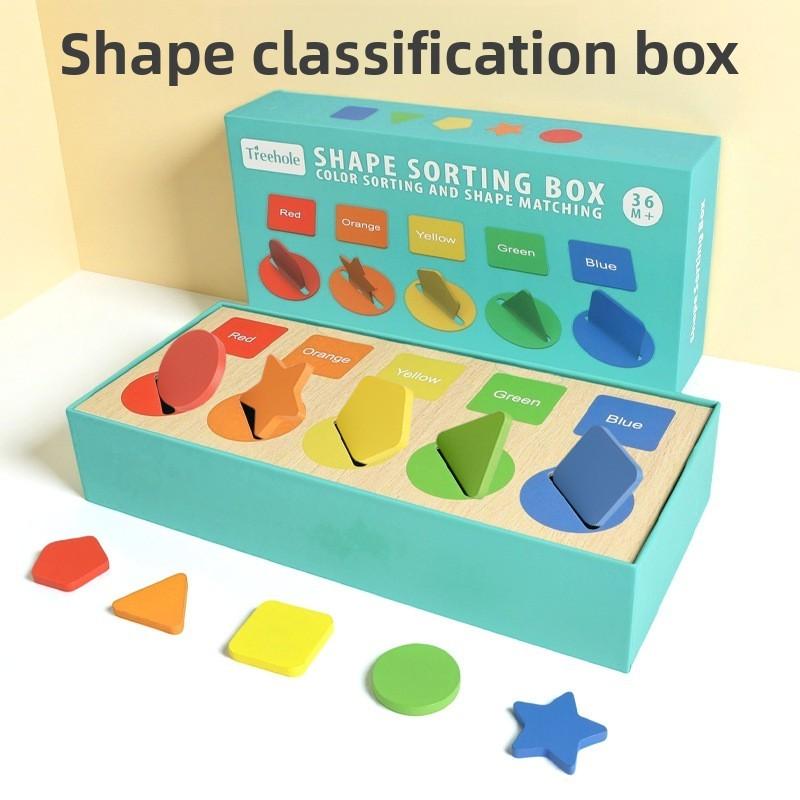 Wooden Montessori Shape Sorting Blocks With Color Recognition For Early Learning