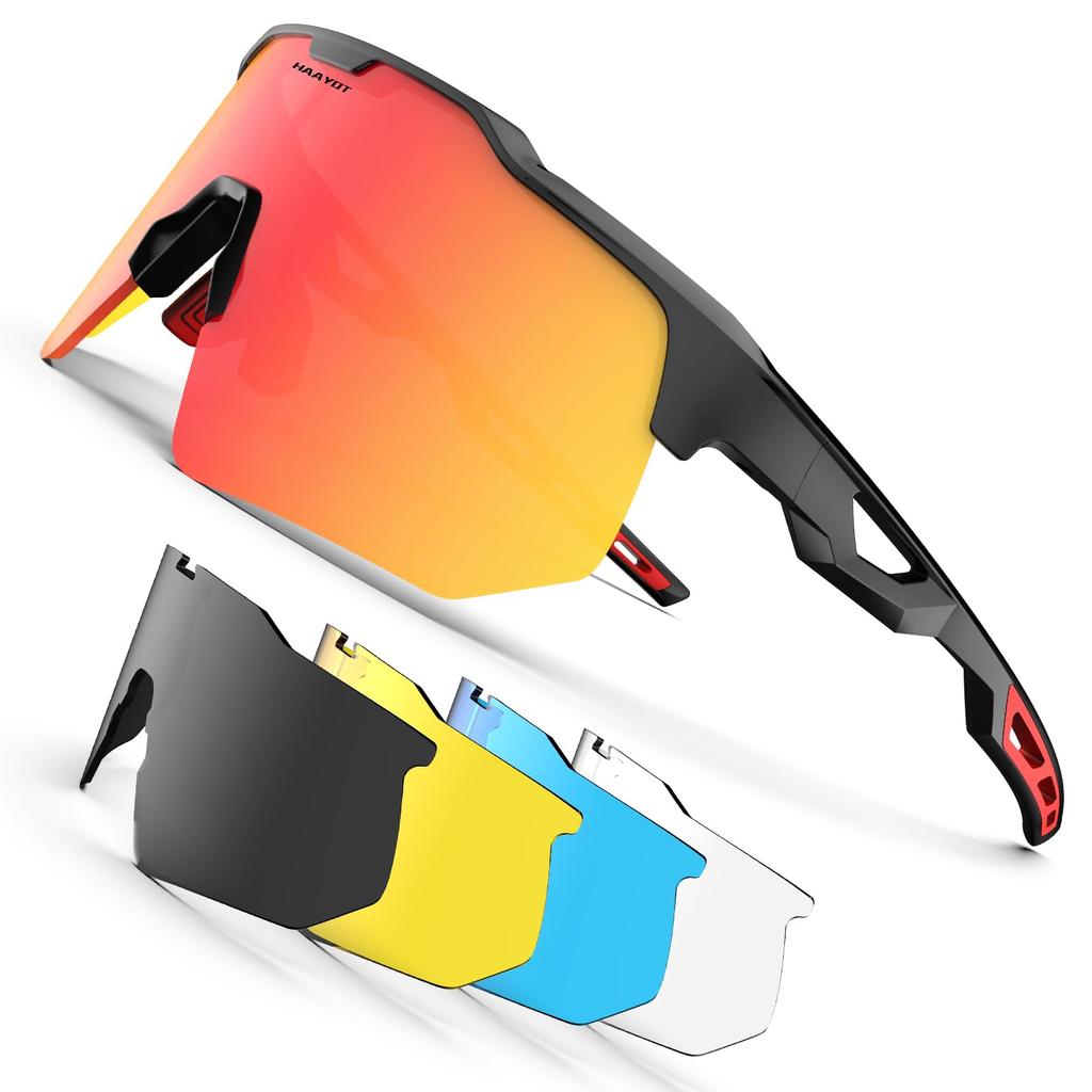 Polarized Cycling Sunglasses for Men and Road Bike Sports TR90 Mountain Bike MTB Glossy Black Red [HAAYOT] Women, Sunglasses, 5-Lens Frame,
