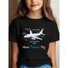 European Sizes Girls Short Sleeve Casual Airplane Illustration Graphic Tee with Magic Text Print Kids Wear Trendy Casual Wear for Girls