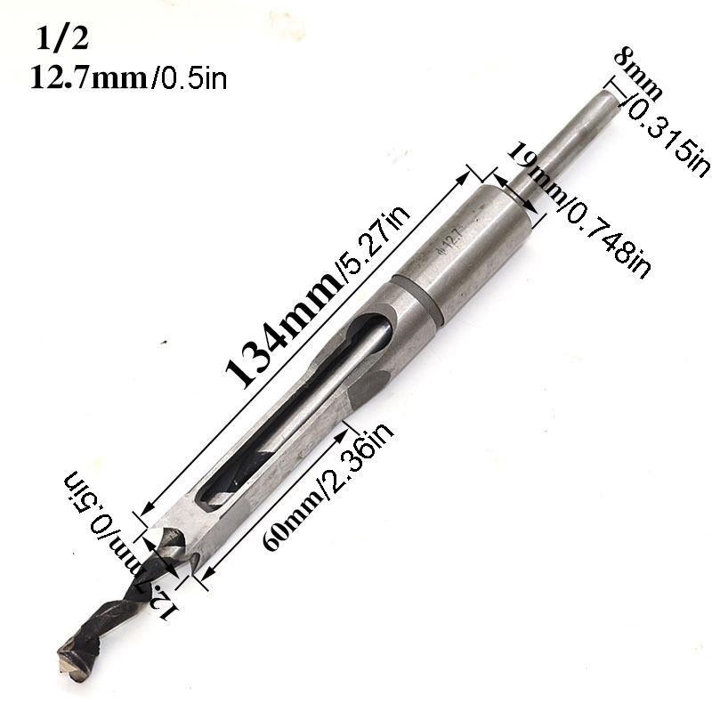 Woodworking Square Hole Punch Bit Set |12.7mm Spiral Slot Chisel Bits with Round Shank | For Wood Drilling