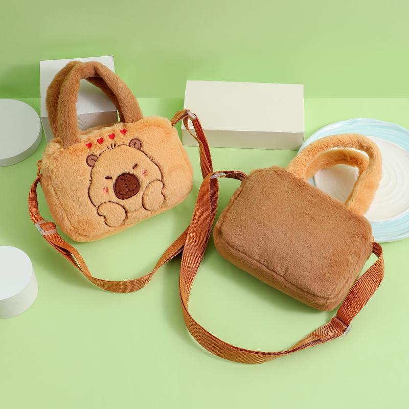 1 Piece Cute Crossbody Bag Animal Capybara Plush Handbag Cartoon Shoulder Bag For Children Couple Gifts