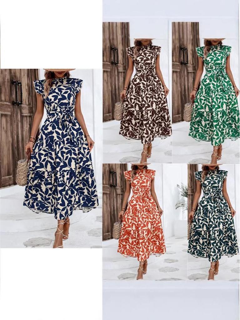 Embrace enchanting elegance with this stunning summer dress, designed to captivate. Crafted entirely from quality polyester, it offers a light, airy feel perfect for warm weather. The dress features playful ruffled flutter sleeves and a chic lace-up detail, adding a touch of whimsy to your look. Its printed design exudes fairy-tale charm, making it an ideal choice for both casual outings and special occasions.