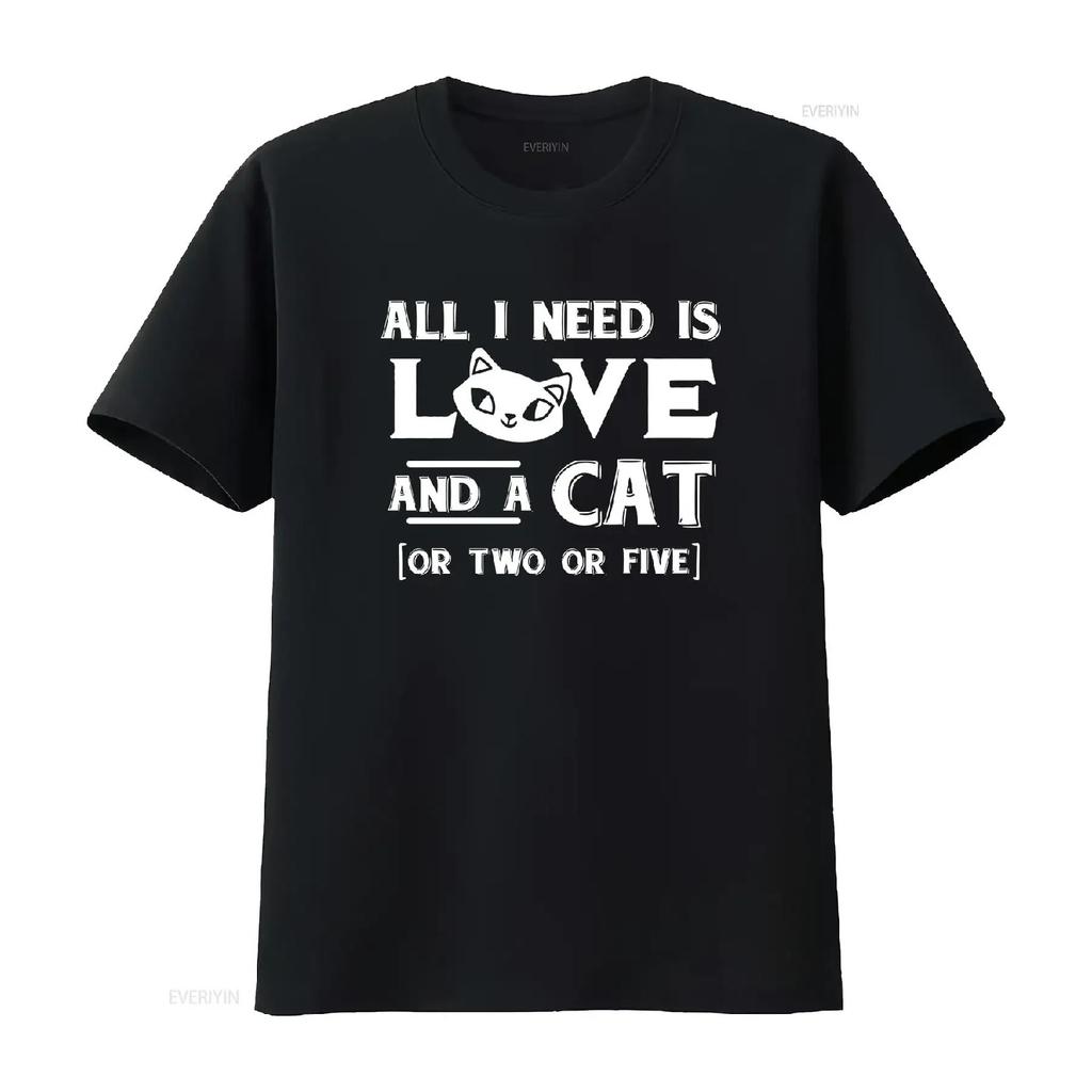 Cat T Shirt All I Need Is Love and a Lovers Cats Vintage Washed Versatile Streetwear Designer Clothes Top For Everyday Wear