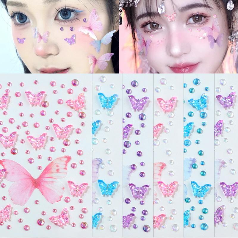 Facial Rhinestone Sticker Butterfly Gem Crystal Tattoo Self Adhesive Body Brow Makeup Mix Size Item Fairy Beauty Colorful Tattoo