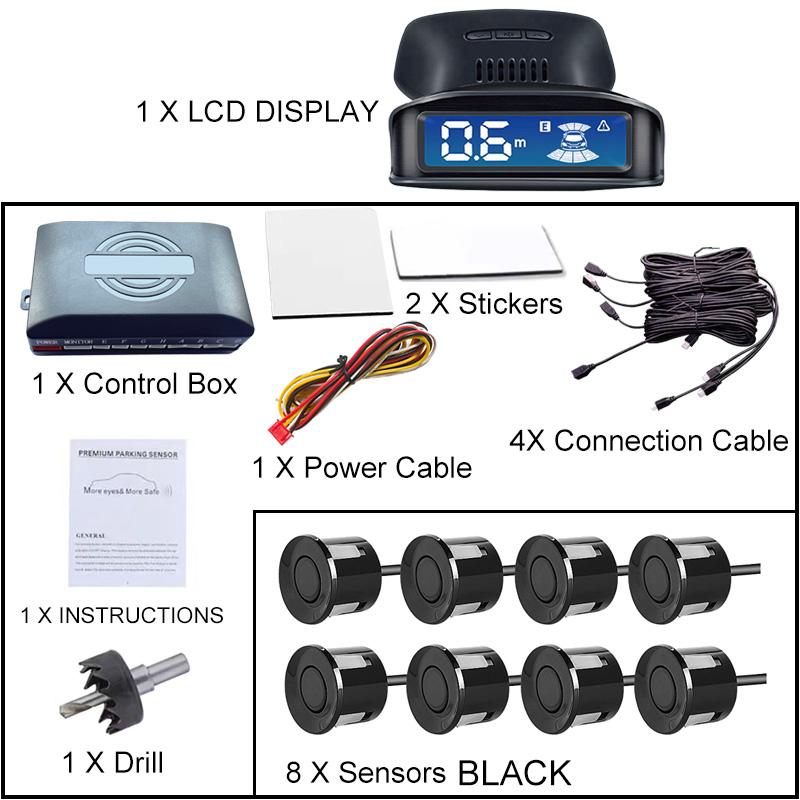 The LCD Monitoring 4-sensor Radar Detection System with Reversing Backlight Display Parking Sensor Has 12 Colors and 12V