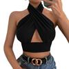 Women's Summer Solid Color Cross Halter Vest Sexy Backless Sleeveless Slim Fit Top for Party