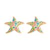 Diamond-set Starfish Earrings, Colorful Rhinestone Fashion Light Luxury Earrings, High-end Flower Simple Stud Earrings, Women