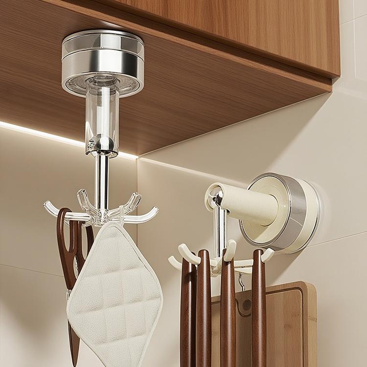 Suction Cup Kitchen Six-prong Hook Seamless No-drilling Rotating Wall-mounted Storage Rack for Pots, Spoons and Kitchenware