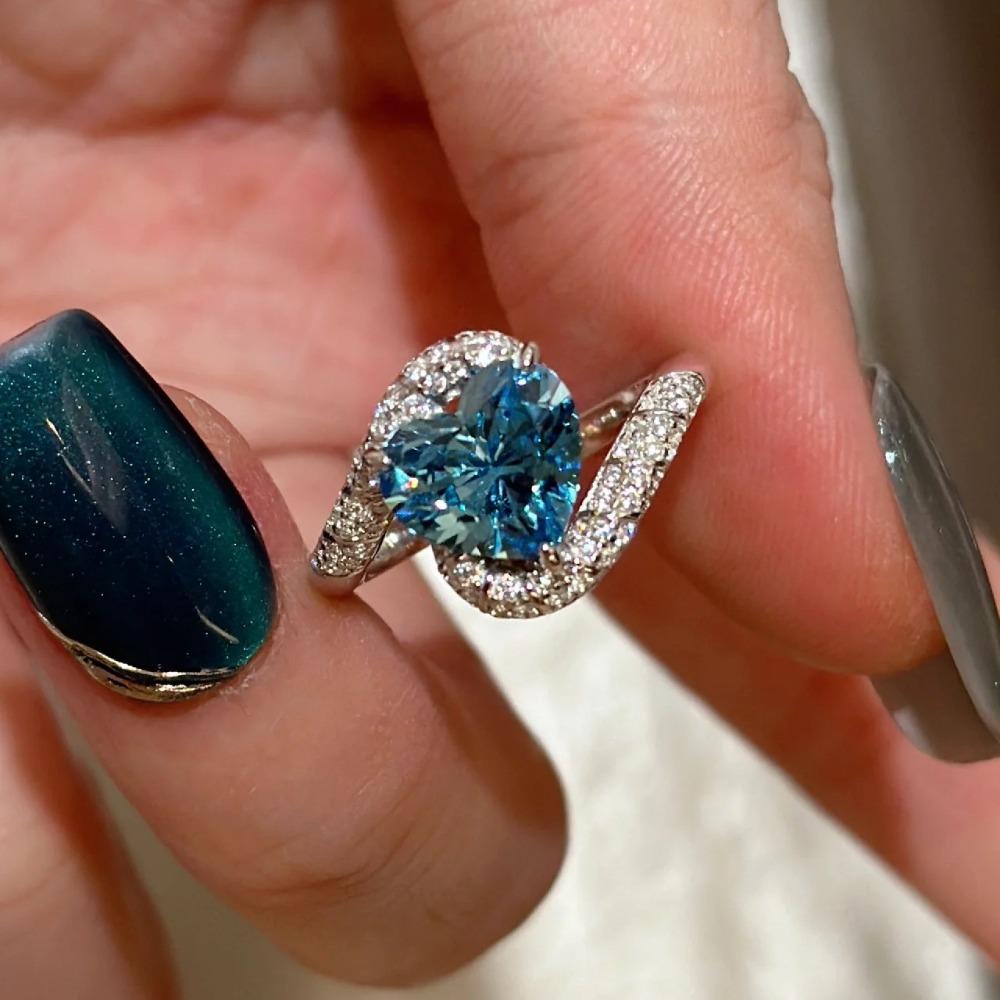 Elegant Santa Maria Aquamarine Heart Ring High Carbon Diamond Open Ring for Women Stylish Venetian Coast Jewelry