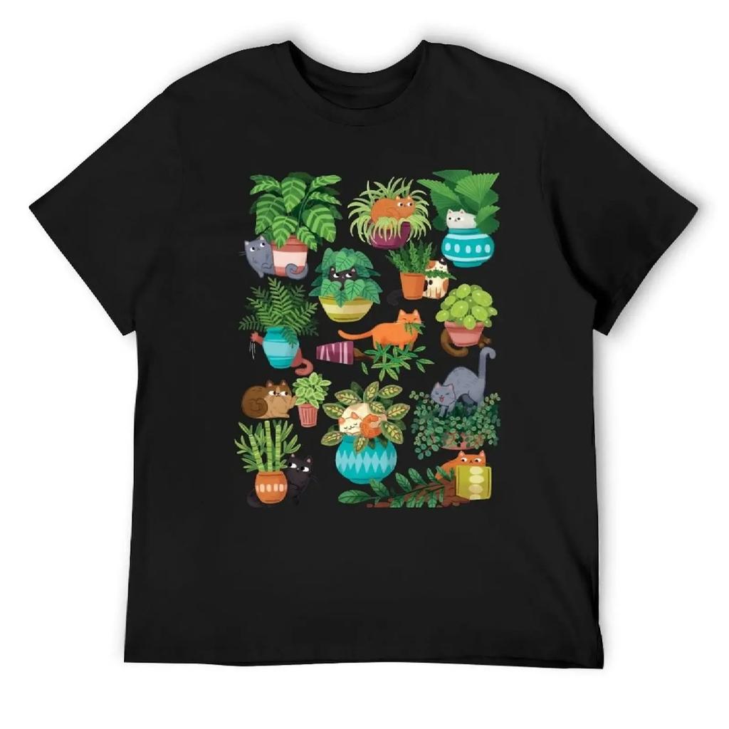 Cats And Plants T-Shirt Boys Whites Animal Prinfor Boys Customizeds Workout Shirts for Men
