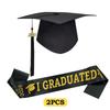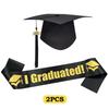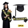 1/2/3Pc Class Of 2026 Black Golden Satin Sash Bachelor Cap With Tassel Graduation Shoulder Strap Congrats Grad Party Photo Props