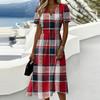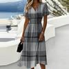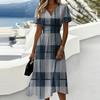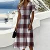 Ladies' Plaid Casual Fashionable Short Sleeved V-neck Dress describe 1. Material: Made of high-quality materials, suitable for daily wear, made of soft fabrics and polyester fibers, lightweight and comfortable, easy to put and take off, comfortable to wear all day long. 2. Occasions: This product is very suitable for daily wear, beaches, outings, gatherings, work, and casual wear. The dilemma of 'what should I wear today'. This is too casual, you may have some extra covers! This product has various colors to choose from to suit your personal . 3. It can be given to friends, family, oneself, etc., making it the best choice for gift giving 4. Clean with cold water, with little change in size. If you have any questions when choosing, please feel free to consult at any time 5. Different monitors may have slight color differences, please don't mind Product information: Seasons: Spring, Gender: Female Occasion: Daily, Leisure, Sports : Casual Thickness: Standard Packaging content: 1 Dress Package-Includes: