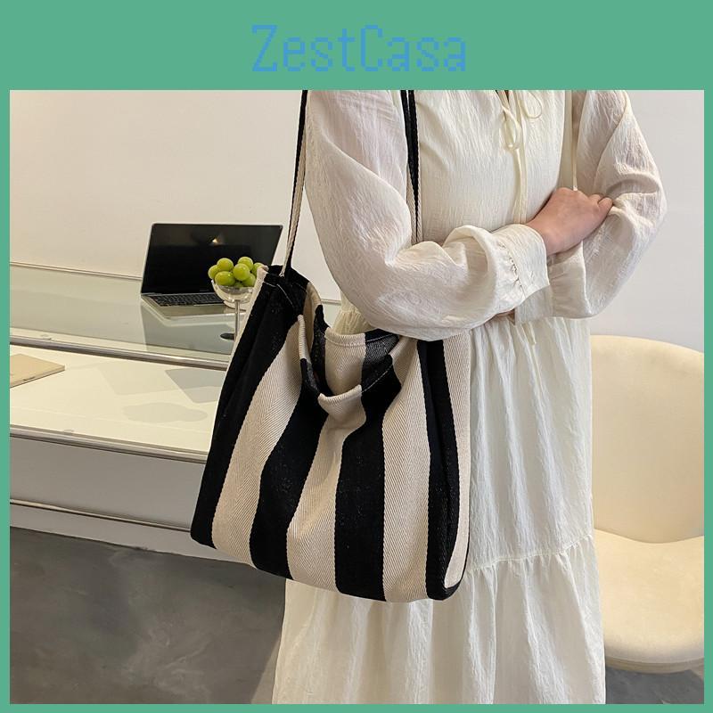 Crafted from high-quality canvas material, this tote bag is both durable and lightweight, making it the ideal companion for your daily adventures. The bag's soft texture ensures it comfortably rests on your shoulder, while the dual shoulder straps offer added stability and ease of carrying. The chic stripe design adds a touch of elegance, turning this bag into a versatile staple that can seamlessly transition from casual day trips to more formal outings.