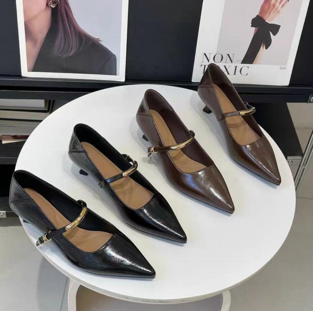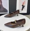 2026 French Vintage Pointed Mary Jane Shoes for Women Spring Workwear High Heels Woman Stiletto Heels Office Leather Shoes